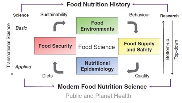 El artículo de opinión estudia y analiza los cuatro pilares determinantes para avanzar en la ciencia de la alimentación y la nutrición como un campo integrado de investigación: seguridad alimentaria, suministro de alimentos y su inocuidad, y finalmente la epidemiología nutricional. Se concluye que es necesario trabajar de manera mancomunada, reforzar la ciencia confiable, la educación nutricional, la nueva comunicación científico-pública, la política integrada, la inversión, la disponibilidad de alimentos y las estrategias culturales como temas esenciales para crear mejores sistemas alimentarios, y, por tanto, poder influir en un envejecimiento saludable y el bienestar de las poblaciones así como la salud planetaria.