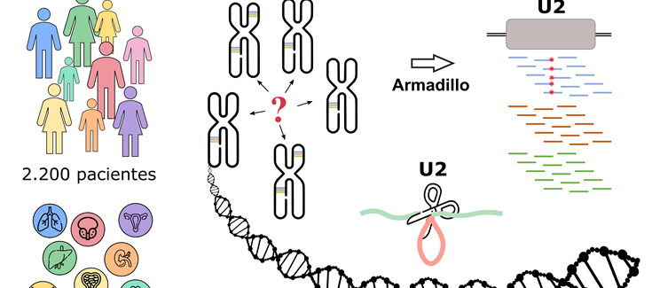 Alrededor del 50% del genoma humano es lo que se conoce como genoma basura, fragmentos repetidos por todo el genoma y sin función conocida. El estudio que publica hoy la revista npj Genomic Medicine describe por primera vez la relevancia de estas regiones en la progresión tumoral. Mediante el desarrollo de una nueva herramienta bioinformática, denominada Armadillo, los investigadores han podido explorar la presencia de mutaciones en estas regiones. El análisis de más de 2.200 genomas completos pertenecientes a 20 tipos de cáncer distintos, permitió identificar varios genes repetitivos mutados recurrentemente. La alteración más frecuente afecta a un gen muy pequeño, que no codifica proteína, pero que es esencial para la maduración de la mayor parte de los genes expresados por las células.