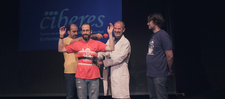 El evento de divulgación #ImproCiencia, celebrado ayer por la tarde en la Sala Nave 73 de Madrid, juntó ciencia e improvisación teatral para explicar de una manera lúdica la investigación biomédica que realiza el Centro de Investigación Biomédica en Red (CIBER) en sus ocho diferentes áreas temáticas. La compañía Impro Impar preparó diferentes dinámicas de improvisación relacionadas con proyectos en enfermedades respiratorias, salud mental, enfermedades raras, diabetes, enfermedades hepáticas, salud pública, nutrición, y biomateriales e ingeniería de tejidos con la colaboración del público asistente y los investigadores responsables de estas investigaciones.