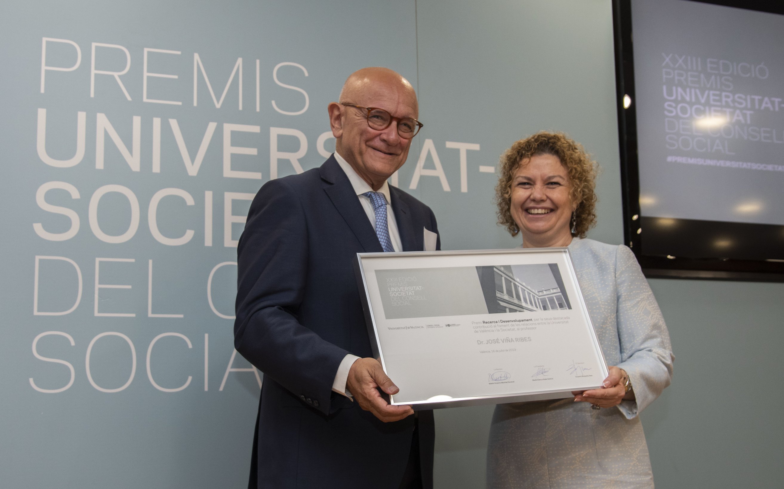 El jefe de grupo del CIBERFES José Viña recibió el pasado 17 de julio uno de los Premios Universidad-Sociedad que otorga el Consell Social de la Universitat de València (UV).