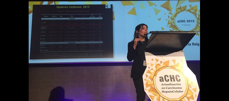 Por tercer año se ha celebrado la Jornada de actualización en Carcinoma Hepatocelular con la asistencia de más de 150 médicos e investigadores involucrados en este campo del conocimiento. Este evento se lidera por el grupo de oncología hepática (BCLC) dirigido por el Dr. Jordi Bruix, director científico del CIBEREHD y va dirigido a potenciar la investigación en cáncer hepático y a mejorar la asistencia a los pacientes afectos de esta neoplasia. Se exponen los avances relevantes ocurridos en los últimos meses y las controversias existentes en cómo afrontar los retos de futuro. De este modo, se estimula la colaboración en red en proyectos dirigidos a aspectos epidemiológicos, moleculares o de tratamiento. En este sentido, cabe destacar el estudio epidemiológico que presentaron los Dres. Rodriguez de Lope y Varela en el cual se observa que la cirrosis por ingesta de alcohol es el factor de riesgo más importante para el desarrollo de este cáncer, aunque la infección por virus de la hepatitis C sigue siendo un factor relevante. El futuro control de la infección viral motivará que progresivamente se llegue a un escenario en que las causas más relevantes de cáncer hepático sean el alcohol y el síndrome metabólico asociado a la obesidad. Ambos claramente prevenibles y tributarios de campañas de salud pública.
