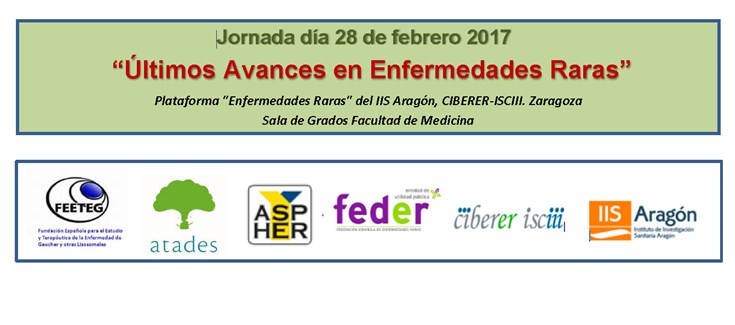 En esta jornada, organizada por la Plataforma "Enfermedades Raras" del IIS Aragón y del CIBERER, se expondrán los avances en la investigación en enfermedades como Gaucher, déficit de lipasa acida lisosomal, Niemann-Pick C o cornelia de Lange. Se abordará también la investigació en enfermedades mitocondriales. Además, se hablará sobre la importancia de los centros de referencia, el papel de las asociaciones o las necesidades de los pacientes con enfermedades raras.