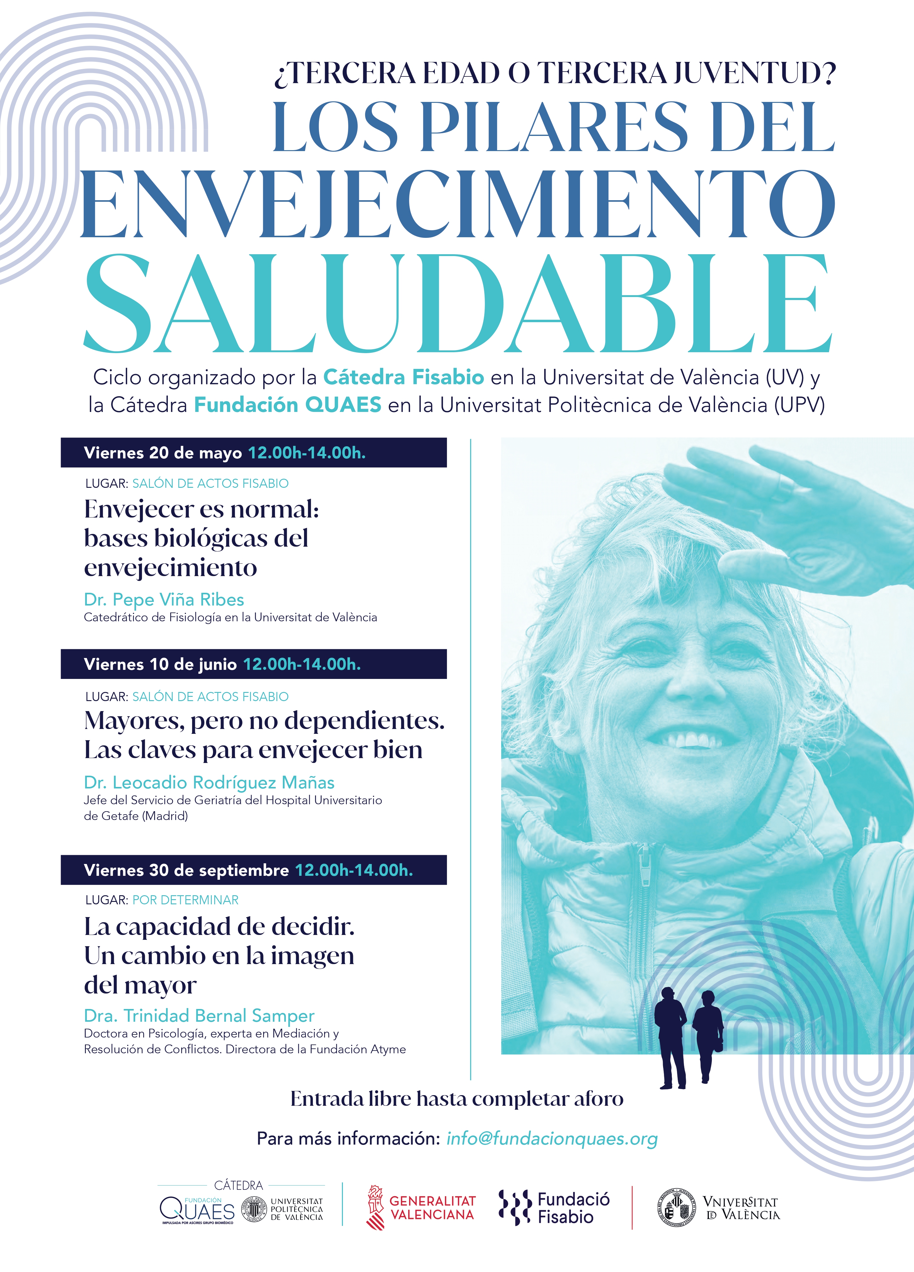 "¿Tercera edad o tercera juventud? Los pilares del envejecimiento saludable" es el título del ciclo de conferencias que organiza conjuntamente la cátedra Fisabio-Universitat de València y la cátedra QUAES-Universitat Politècnica de València para visibilizar y potenciar la I+D+i en materia de salud.